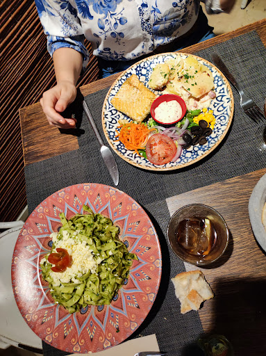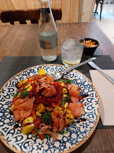 We sat outside on the terrazzo. It was raining hard, but we had a nice cozy, enclosed space with great ambience. They have heated lamps and it doesn’t feel too enclosed because it is basically floor to ceiling windows all around. The staff were so welcoming and patient with us as non-Spanish speakers. They had an English menu as well. My daughter has severe nut allergies, and they were knowledgeable about the safe foods. The only nuts were almonds and the walnuts in the pesto. The burrata with tomato and pesto was delicious! The service was also fast! They even brought a dish of candies for my children at the end of the meal. Highly recommend for a great...