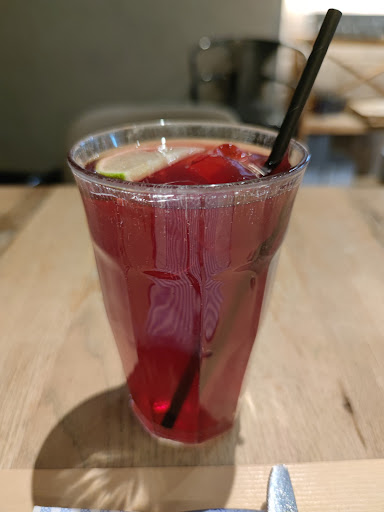 Para beber me tome un agua de flor de Jamaica , una bebida elaborada con hibisco y un toque de limon , fresquita , muy rica.