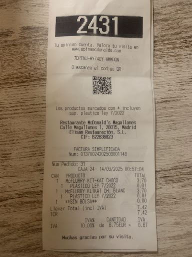 Read moreUna de las peores experiencias de atención al cliente que he tenido en un McDonald’s. Fui al local de la calle Magallanes nº 1 poco antes del cierre. A las 00:57 pedí para consumir en el local, nos entregaron la bandeja con normalidad, y minutos después la encargada vino de muy malas maneras a echarnos fuera.