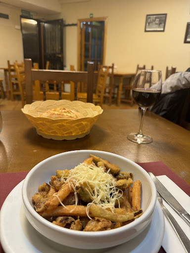Por las opiniones recientes, esperaba encontrar algo de buen gusto, pero no ha sido así. Al llegar y ver que tenían menú, decidí probarlo. De primero la fritura de verduras, algo dura y el queso rayado por encima aún estaba fresco, aunque el sabor fue pasable. De beber pedí un ribera suavecito (esperaba que me dijeran que tenía suplemento por estar fuera de menú, pero no fue así) y me trajeron la copa ya servida (no se de qué vino), al probar, pedí que la cambiaran si era posible ya que me sabía muy fuerte, la cambiaron enseguida y el camarero trajo a mi parecer el mismo vaso ya servido… (tengo la manía de observar los defectos de los vasos y me quedé con el detalle que traía este), quedé a la espera…