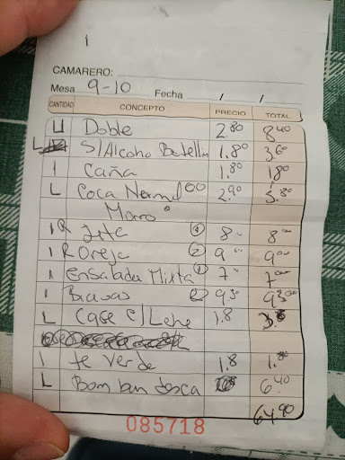 Read moreMiércoles 18 de Octubre 2023 , son las 22:17, hemos pedido dos cervezas y tapa de jeta y estaba estupenda, buenísima. El servicio un poco lento y con bastante poca experiencia ya que estábamos pidiendo y tardaron en hacernos caso por que estaban hablando y con el tlf, aparte , ella me ha visto llamarla pero directamente a ido a la barra sin atenderme y se ha puesto con el móvil. A la segunda ronda, He pedido jeta y me han traido costillas, costillas y frías. Me encanta el sitio y soy clienta habitual, la comida está riquísima pero hoy me he llevado una sorpresa. Supongo que no hay que elegir aperitivo , pero no me digas que me lo vas a sacar, y me saques otra cosa y fría, no me hagas esperar pidiendo mas bebida . Por tercera vez he vuelto a pedir dos botellines , y una tapa de jeta ya que anteriormente la había pedido y me habían sacado otra cosa, la chica se ha puesto un tanto prepotente y chula, un...