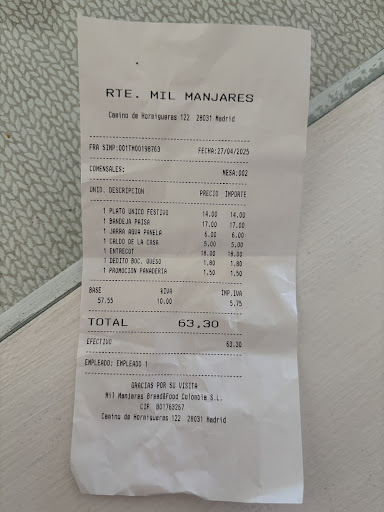 Read moreArrepentida de elegir este restaurante , me hablaron maravillas y es todo lo contrario. La comida malísima , el batido de mora no tiene color ,más leche que mora . El plato de chuleta valluna , la chuleta más grande que el plato , una cucharada de arroz , y otra de ensalada , para esoo solo vendan la chuleta y ya está , sola sin nada . el entrante llega después de entregarnos la comida , pedimos varias cosas y ningún llegó bien , pedimos una ración de aguacate y nunca llegó , el perrito caliente que es pan salchicha y no tiene cosa de otro mundo , media hora tardo ya al final no lo queríamos pero por desencia pagamos todo . Fueron los peores 40 euros de mi vida , aunque la cuenta entre todos fueron como 100 euros , invertir en comida y nisiquiera comer bien por no decir nadaaa, y encima queríamos llevarnos la comida y cobran un táper 1 euro 😒 lo que nos faltaba para completar la cuenta . La verdad nos llevamos la comida no para seguirla comiendo si no porque no comimos nada y dejamos prácticamente toda la comida , y por dársela así sea a un pobre de la calle , pero que comida más mala y la atención ya ni te digo , que chicas más maleducadas y te miran como si les estuvieras debiendo algo , te miran mal , el ambiente es incómodo . Trabajar atención al público es agotador , pero no tienes que llevar tus problemas al trabajo y estar con mala cara ante una persona . Ojalá pudieran devolverme mi dinero 😭 me hubiese echo una compra y cocinado en mi casa ,porque para lo que comi llegué con hambre a mi casa . Sin duda el mejor restaurante de Madrid colombiano y con la mejor atención es LA FONDA...