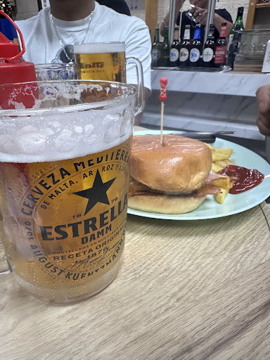 Bar atendido por camarera muy amable y simpática... Aperitivos espectaculares de todo tipo... Cervezas muy frías con sus jarras heladas!! Como debe ser... Hamburguesas caseras.. como en casa.. Parece fácil lo que ofrecen .. pero algo tan simple como poner una jarra helada del congelador o simplemente un pincho de tortilla casera como en casa...cada vez lo veo menos en los bares... Bravo por el Montaña!! A resurgido con la nueva...