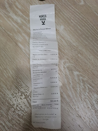 Read moreTengo que decir que mi experiencia en la Vinoteca Restaurante Muñecas Brava fue sencillamente terrible. Desde el momento en que entré, me encontré con un ambiente que, lejos de ser acogedor, parecía más bien un almacén mal iluminado. Las mesas estaban mal ubicadas, demasiado juntas, y la decoración era tan genérica que casi parecía que se habían olvidado de decorarlo en absoluto.