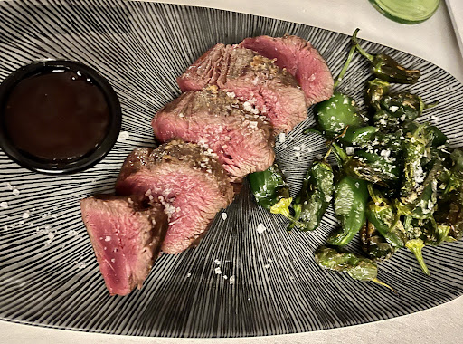 Skirt steak was a bit chewy and served sliced. Due to the slicing it was a bit cool when it arrived at the table. The final dish was fried eggs over fried potatoes with shaved ibérico ham. This is a rustic dish and was served with perfectly cooked eggs crispy on the outside, fluffy in the inside diced and pan fried potatoes. The ibérico ham provided the salt and elevated the simple...