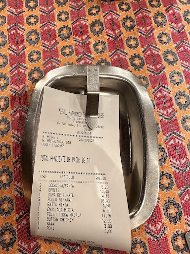 Read moreThis is restaurant hiding in a neighborhood in Barajas near Madrid airport. The inside is quiet, clean and tidy, with a very Nepalese decoration. My wife and I ordered garlic naan, chicken soup, salad, kebab, lamb sekuwa and keema rice. The meats were seasoned to the right extent, with right amount of spice to give the food a southern asian flavor but not too much to cover the original taste of the material. It wasn’t oily or greasy at all either. Naan bread and keema rice were perfect too. I’ve had Indian food and Nepalese food elsewhere but this restaurant was by far the best among all. I would highly recommend you give it a try if you are...