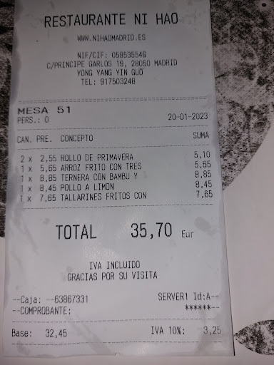 Pedimos para llevar y desde el principio fue todo mal, cuando entre al local la mujer del dueño, "la jefa" estaba hablando por telefono nadie me dio las buenas noches a pesar de que pasaron por delante de mi 4 personas de las que trabajaban en el local, nadie me dijo ni siquiera hola ni me pregunto que queria despues de unos minutos la "jefa" como la llaman los trabajadores me pregunta que quiero con mala cara le digo que voy a recoger un pedido me dice que todavia no esta listo y se pone a hablar con un camarero sobre si le ha puesto la salsa a un pollo al limon del ultimo pedido, cuando me dan la factura subida de precios, cuando llego a casa el arroz tres delicias tengo que tirarlo estaba duro no se podia comer apenas tenia algun guisante, la comida de mala calidad y muy aceitosa, por supuesto no volvere es una pena ya que empezamos a ir a su primer local de arturo soria hace muchos años que es el que lleva su marido, el verdadero jefe antiguamente te recibian unos sonrientes y amables chinos que se preocupaban por cada detalle ahora tienen sudamericanos que ni te saludan al entrar una pena como a bajado la calidad de la comida del local y...