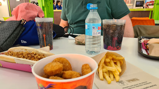 Read moreEstá bien situado en la zona del parque de atracciones de niños pequeños Nickelodeon. Veníamos con el menú express que ofrece el propio parque en el que puedes elegir entre hamburguesa o perrito y te ponen además patatas y bebida por 10€. Viendo el precio no esperábamos gran cosa. El perrito normalillo y la hamburguesa regular. Las patatas en nuestro caso recién hechas y estaban ricas. Fuimos justo a la una y había sitio para sentarse...