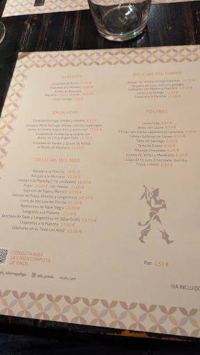 Read moreFui a comer a este sitio con mi familia a las 3 de la tarde. Pedimos caldo gallego (aparecía en la carta), nos dijeron que no había porque era plato de invierno. Pedimos almejas, nos dijeron que tampoco quedaban. No recuerdo qué era, pero pedimos otro plato que tampoco había… un fracaso. Después pedimos la ensalada de tomate, la tortilla de betanzos, zamburiñas y la cazuela de pulpo, langostinos y almejas. Les dijimos que si no había suficientes almejas para la cazuela que pedíamos otra cosa pero después de preguntarlo en cocina nos dijeron que sí había. 5 almejas contadas pusieron. De postre pedimos las filloas que estaban muy buenas. Sobre el servicio, daba la sensación de que tenían prisa porque terminásemos de comer. Por ejemplo, trajeron la tortilla de betanzos y nos la echaron directamente un cuarto a cada uno en los platos, en lugar de dejarla al centro. Después no habíamos terminado de comerla y vinieron a retirar los platos para cambiarlos, había dos personas comiendo aun y le quitaron el plato a las otras dos y estuvimos dos comiendo con plato y dos sin plato. Todo como muy corriendo agobiante. Me solía gustar este sitio pero esta vez ha sido decepcionante. Y comentar que 11.50 por un tomate en rajas… es un poco caro. Estaba bueno pero tampoco el mejor tomate de mi vida. Lo demás buena relación calidad-precio. Todo costó 127 euros con bebida vino,...