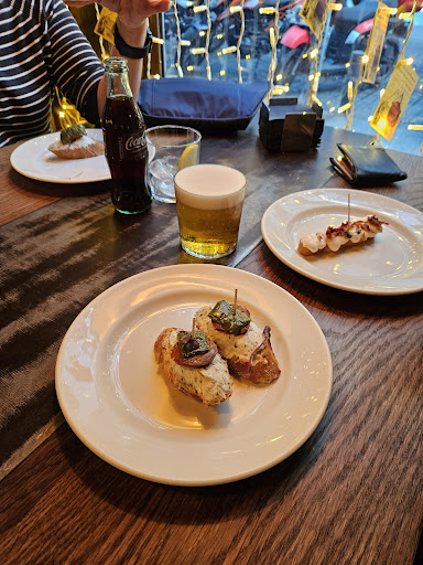 Read moreOrio is great for Pintxos! I've been here a few times now and like it a lot. Upstairs is the restaurant part and downstairs is the tapas area. You can also get oysters, if you're into that stuff. I prefer the downstairs bit, because it's more relaxed. This is how it works: you go to the bar, have a look at the pintxos and pick out the ones you fancy. You need to keep the sticks, because at the end of your meal they tally them up and they make up the bill. Each stick has a different value, but I think the pintxos range between 2-3 euros each, depending on the ingredients. The upstairs is a bit more formal. The food is nice, but the portions are small and to be honest the dishes are a bit on the...