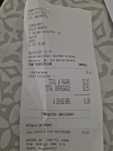 Read moreHe comprado varias veces en la web y todo correcto. Hace dos semanas pase por la tienda outtlet y compre varios vinos. Dos de las botellas son de un rioja de cosecha La Locomotora a 6 €.. En la tienda no me fijo en que es de 2018 y tampoco nadie me advierte. Al abrirlo ... el vino no está en condiciones. Lo peor de todo es que cuando les traslado mi descontento me doy cuenta de que no es un error o un descuido sino que su idea es venderlo y si alguien protesta ofrecerle un cambio de botella, Yo no las he guardado y además si la idea es que me den otros a ver si por casualidad están bien .. Por otro lado, observo, ya en casa, que tiene una etiqueta de importado en Finlandia !!! EN resumen, en esta tienda hay que tener mucho cuidado porque no todo puede ser lo que parece.