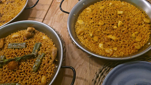 Pedimos paella valenciana y arroz al horno. La paella estaba fría y el arroz a buena temperatura, recién sacado del fuego y la paella llevaba un rato esperando para salir a la vez (supongo). Pedimos antes un entrante de bravas. Le llaman entrante a una patata troceada en trozos pequeños y salsa no brava... (aquí ya dejan de hablar con propiedad). El precio que se paga por esa mier_ _ de entrante es un robo(8,50€). Me sentí estafada.. La paella de sabor ni fú ni fá, le faltaba sabor, había poquitod trozos de carne... el arroz al horno estaba bien, pero nada que pensaras enseguida en la terreta.