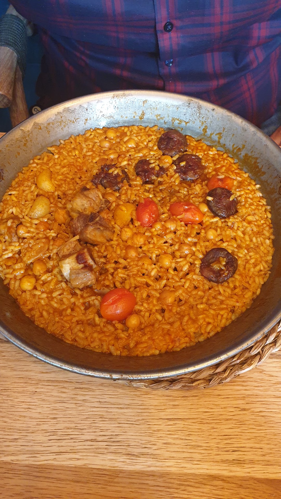 Could improve: Initially it seems good to have individual paellas because everyone can have what they want but honestly these weren't good. You can taste that they use cheap tomate frito in the paella instead of making a real sofrito from scratch. The few pieces of meat (4- two inch pieces) they gave us were super tough and the rice was hard. We were the only ones in the restaurant so there was no excuse. It was also really strange that the meat was tough because we were told that many of the parts were premade which is why you can't make substitutions. To add, the portion is very small for what you're paying. The pans are very wide but shallow. The 6.50€ tomato salad is literally 1 beef tomato a half of onion...