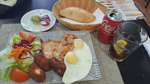 Great Little basic food place with friendly owner and good, reasonably priced food. After several days of eating over priced small servicing of Tapas, (seems nearly every Restaurant in Madrid only do Tapas) usually seafood (Madrid isn't exactly a coastal fishing village) all I wanted was a basic meat, potatoes and vegetable entree at a reasonable price. After searching Trip Advisor and Google maps for over an hour I finally found a place that I though might work (not this place) Trip advisor and Google had the same address for the other place but very different pin locations on the map. Decided to try the Trip Advisor location since it was closer. ( I was staying next door to the art museum). Walking along the way I came across the Pando.. simple menu, order by number with photos posted outside...a server (who turned out to be the owner) was taking a meal out to the outside tented dining area and it looked exactly like what I wanted. Decided to try it...ordered #3..Pollo ensalada, croquetas y patatas fritas. Nice sized grilled chicken breast, nice fries and crisp lettuce salad . Very nice meal of adequate proportions and reasonably priced. If you tired of over priced small servings of Tapas and want a reasonably priced decent meal this would be a...
