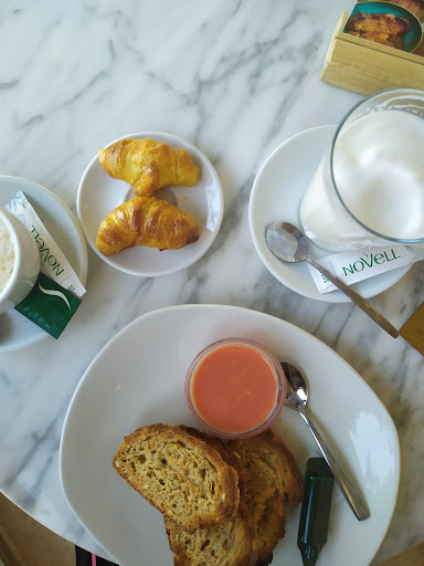 Read moreHe caído por esta zona esta mañana (23-03-25) y era la primera vez que entraba. He desayunado un menú andaluz que era un mollete de pan con jamón y tomate/aceite (bastante generoso en tamaño el mollete) y un café con leche. Luego he tomado a par de croisants pequeños que estaban muy tiernos y una palmera de chocolate pequeña que estaba buena pero me la esperaba más tierna. Estas cosas que pedí fuera del menú te las cobran al peso. En total 8 € por todo. La calidad del producto era muy buena y el personal muy atento. El mismo chico al que me pedí la comanda me preparó café y todo y lo hizo relativamente rápido. Como algo negativo a destacar la de cantidad de vajilla que había pendiente por recoger de clientes anteriores… para poder sentarme en una mesa he tenido que retirar yo la vajilla. Por lo demás muy...