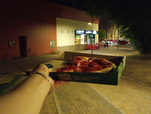 Logicamente lo de gracias a Papa John's valderrebollo es por que por lo sucedido el jueves, Pilar no vivia en plenitud con su dia a dia, por lo que en casa de otro amigo, realizamos un nuevo pedido al PJ de su zona, donde sin ningun problema nos atendieron, nos las trajeron, nos las comimos (no el vecino) y pasamos una agradable noche entre pizzas vinos y juegos de mesa. Para nada similar a lo que ocurrio el jueves por culpa de los aqui descritos, en anteriores parrafos.