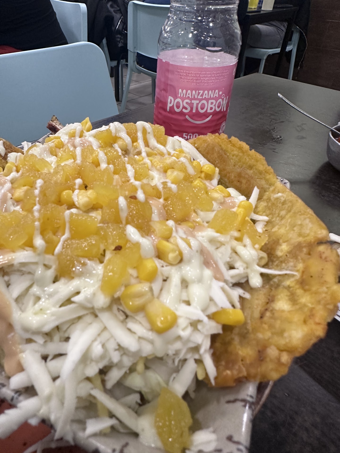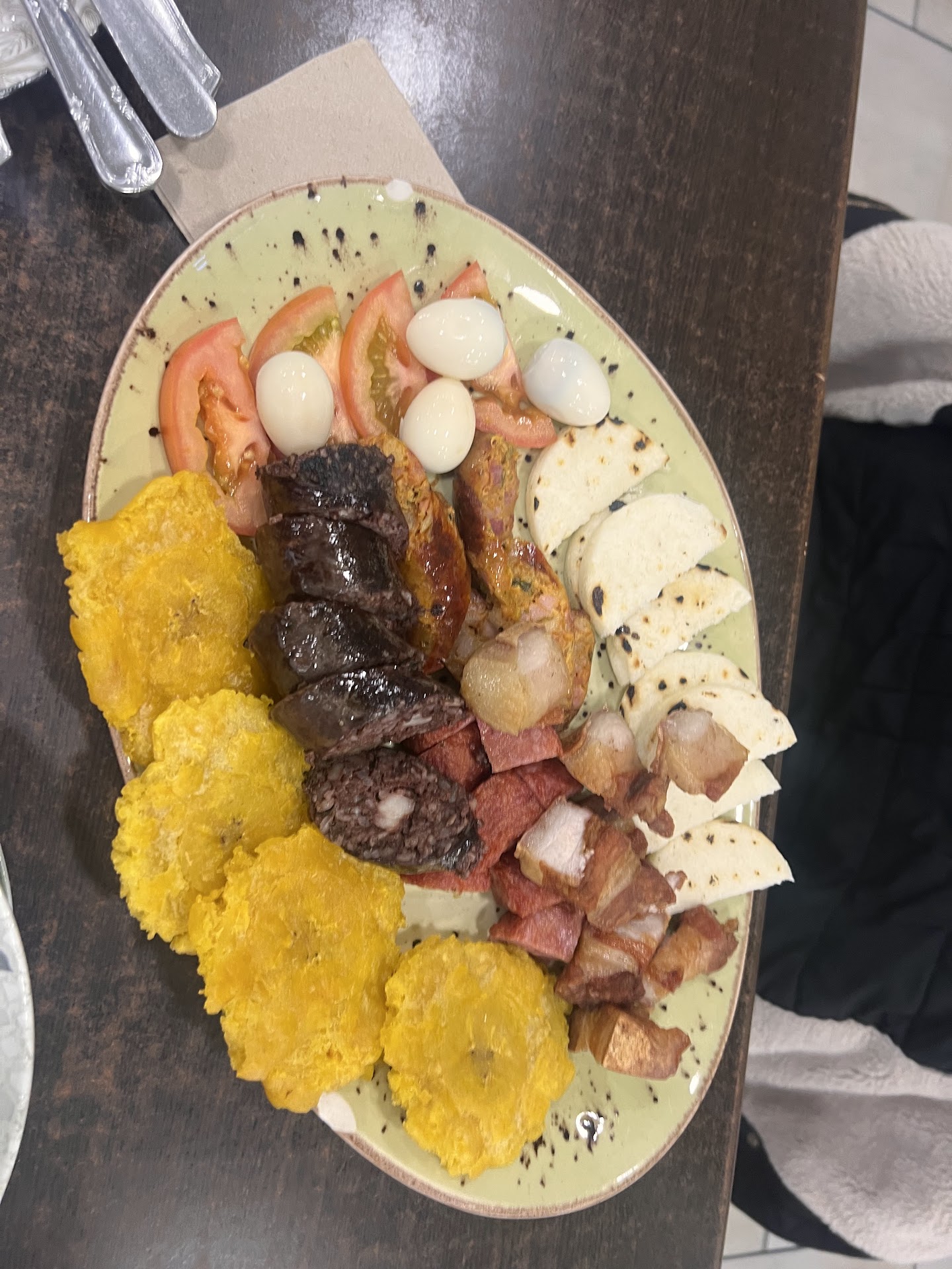 Luego, llegó el plátano maduro con carnes y guacamole, una combinación tan buena que pensé que el mismísimo Gabriel García Márquez lo habría descrito en sus novelas. Las carnes estaban un poco pasadas para mi gusto, pero recordé que estábamos en territorio colombiano, donde la carne se toma en serio, ¡más allá del término medio!