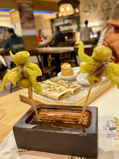 Я нашла в Мадриде уютное, маленькое местечко, о котором стоит рассказать. Помимо приятной атмосферы, персонал очень дружелюбный, что делает визит еще приятнее. Но самое интересное здесь — это закуски: их подача настолько оригинальна, насколько и вкусна. Одно из самых любопытных блюд — круглый пирожок, который подается со шприцом, наполненным соусом. Посетитель вводит соус в пирожок с мясом, и он становится сочным и насыщенным по вкусу. Другие закуски также поражают своей оригинальностью и вкусом, и каждая из них заслуживает внимания. Определенно рекомендую это место всем, кто ищет необычный кулинарный опыт в Мадриде с ноткой оригинальности и вниманием к деталям, которое...
