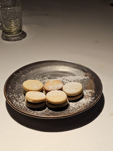 We kicked things off with these cute little cookies that were just the right amount of sweet – a perfect start. But let's talk about the steak. It was incredible, cooked just the way I like it, with that perfect char on the outside and juicy on the inside. You can really taste the quality.