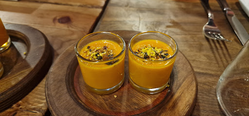 El pienso del día: 2️⃣ Sopa de miso al rescoldo. Un gustor muy bueno, el punto final es algo picante. Muy rico. 3️⃣ Sogizukuri de pez🐟 limón🍋 con salsa de pimientos asados y okra. Una crema de pimientos muy rica y el pez limón se deshacía en la boca. 4️⃣ Choripan🍞 del siglo XXI. Un bollo preñado de toda la vida pero en este caso, es un pan bao. Acompañado de un chimichurri top. 5️⃣ Usuzukuri de toro🐟 vs vaca🐄 vieja. Contrastes de sabores y texturas. Toro era pura mantequilla. Vaca más firme aún así tierno. Semos del team toro. 6️⃣ Gyoza de vacío ahumado con jugo de berenjena. En el vacío se notaba muchísimo el toque a humo. Muy rico.
