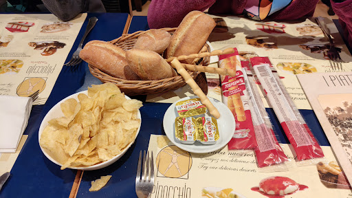 Read moreSTAY AWAY! This is 150% a tourist trap, in front of museum Reina Sofia. The only Italian thing here is the name. Period. I was seated by the waiter, given a menu, then, after 3 minutes, the waiter brought unrequested bread+butter+potato chips, instead of asking if I was ready to order. Sent back all that stuff, ordered a draft beer and a Pizza Margherita, this latter being the acid test for any true (or wannabe) Italian restaurant. 15 minutes later they brought me a frozen "plastic" pizza, cooked in the electric oven, with tasteless tomato, tasteless cheese, partially uncooked on the bottom, covered by an excessive layer of low-quality vegetable oil. Desperately tried to give my pizza some taste by adding on top of it some oregano: nothing to do! Even the dessert was terrible: ice cream cup with 3 scoops, tasteless, with plenty of ice crystals inside, uneatable. Price: 18 euros, a theft. I wonder how this shabby restaurant is still...