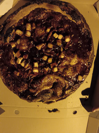 Llego cerca de las 22h00 La pizza sin queso, claramente llego con queso por lo q obviamente llame a reclamar y dijeron q me enviarian otra. Como a las 22h45 llego la nueva pizza, completamente quemada (estaba negra), llamo a reclamar y me dicen q se queman rapido y q si me hacen otra quedara igual de quemada y dicen nuevamente que me enviarian otra. Y sinceramente no se como a alguien se le ocurre enviar una pizza con esas características, hasta por vergüenza yo directamente la tiraba a la basura. Como a las 23h30 creo xq obviamente tuve q comer otra cosa llega la supuesta pizza con 2 gotas de salsa barbacoa, la base mas dura q una piedra (q ni mi perra se la comio de lo dura que estaba).