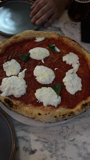 Es una pena que tan bien producto este manchado por el servicio, que no es malo, pero si, al menos en nuestro servicio, tuvo muchos fallos. Primero, cuando llegamos, con reserva de 5 días, nos dieran una mesa de la entrada, que son pequeñas, y teniendo varias mesas dentro, que nos dijeron que una al ser una reserva de 5, pues tenían que tenerla libre y otra pequeña para juntarlas, que me parecía raro, porque en la de grande ya tenían 7 platos y cubiertos puestos, la de al lado de 2, también con los platos puestos, y por último, había una mesa de 2, separada y preguntamos por ella, y nos dijeron que no podían darnos esa, ya que esa mesa estaba exclusivamente reservada, cuando llegamos a las 14:00, cierto que teníamos la reserva a las 14:15 y nos dejaron entrar. Después de varios minutos nos tomaron nota, cosas normal, pero con dos entrantes y dos pizzas, sobre las 14:42 nos trajeron las pizzas, cuando todavía no nos habían traído los entrantes, que no nos tenían hechos, y se llevaron las pizzas y sobre las 14:50 nos trajeron el primer entrante, para más tarde, sobre las 15:00, nos trajeron el otro, y por la tardanza en traernos los platos y del desorden, nos ofrecieron unos chupitos, que algo fué. Después de este desbarajuste, y viendo que estábamos cerrando la puerta cada vez que salía o entraba alguien al restaurante, pues nos cambiaron dentro, a esa tercera mesa, que estaba reservada exclusivamente, después de que los comensales de ducha mesa, llegando después, se fueran. Ya en esa mesa, nos llevaron las pizzas, que estaban deliciosas, no puedo poner pegas a la comida, estaba riquísimo. Y para rematar la faena, pues estábamos mirando los postres y cafés, ya que el tiramisú de pistacho y la tarta de queso, las queríamos probar, y cuando estábamos para pedir, que vino el camarero, y nosotros pensando que nos iban a atender, nos traen la cuenta... Nos quedamos parados, porque no podíamos creer que estuviera pasando, que un restaurante con tan buenas valoraciones pasará así. Bien, cuando ya pagamos y nos dirigimos a la salida, le comento al camarero, que no habíamos pedido la cuenta, él se disculpa y me dice que, es que tenían reservada la mesa, cuando no era culpa nuestra de que estuviéramos así, esto ya, ocurriendo a las 15:33. La verdad que nos dejó mal, pero no por la comida, repito que la calidad es buena, pero el servicio bajo el global de la comida, pero puede ser que haya sido nosotros, ya que varios comensales que entraron después que nosotros, se fueron antes y con muy buen sabor. Lo siento por la valoración, pero nuestra experiencia fue así.