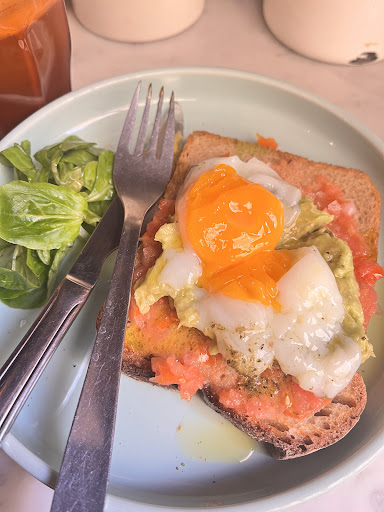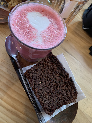 Can I just say how much I loved this cafe. My pregnant self honestly kind of disliked Spain at this point of my trip there because I can’t eat any of iberico ham and other goodies. I was almost close to giving up Spain until I encountered this place. When we arrived here, I was greeted by a lovely man who we ended up finding out he was the owner. It was so lovely talking to him, he’s such an intellect. I learned alot about Spain and different cultures (economy, politics, views.. etc ❤️🥹). I mean this is what traveling is for right ? . I wanted to try this cafe because it looked ig worthy and it was (he kept apologizing for how the heart shape came out on the pink color latte but it’s normal to be like that if it’s not whole milk- so I didn’t care) ! 💕 the pink color latte was beet latte which was sooooooo delish. Perhaps, I’m going back to Madrid just for this cafe and nothing else lol. The vibe was a cozy, hip vibe located in a hole in a wall place. I loved everything about this cafe honestly. It was definitely an experience my husband and I enjoyed. You HAVE to go to this place and check their drinks out. I saw someone eating avacado toast which looked so good too. I’m sure their food items are on point😊.