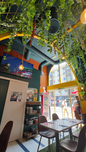 El chico que nos atendió, Jay, siempre fue amable y muy servicial, cada vez que le preguntábamos una duda, nos lo resolvió sin problema. Hasta le preguntamos por las salsas porque nos encantaba y nos dio indicaciones de cómo hacerla. Es un local pequeño pero acogedor, bien decorado. Nosotros pedimos: