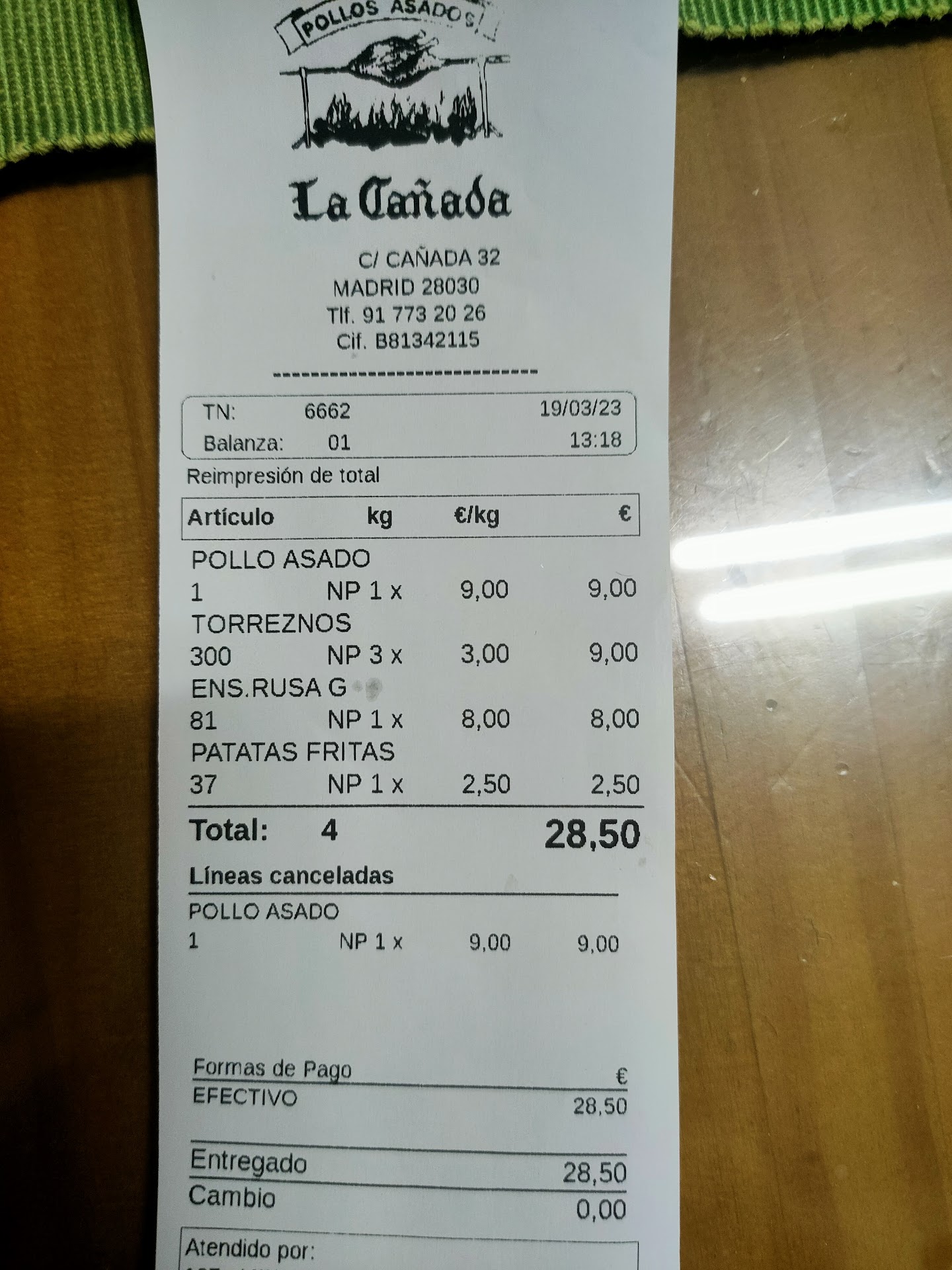 Read moreHace 3 años que vivo en Moratalaz. Desde entonces no hay semana que mi pareja y yo no cojamos un pollo asado. Casi siempre muy rico menos cuando te lo dan del día anterior. Hoy por fin mi pareja se ha decidido a pedirles otro pollo cuando una vez más y a pesar de ir cada semana, se lo iban a dar del lado izdo del cajón. Ahí tienen ya envasados los del día anterior y a la derecha o fuera los que van envasando del día. Me parece mal dar comida del día anterior, peor hacerlo al mismo precio y no tiene nombre intentar colárselo a un cliente habitual. Pensábamos que eran cosas nuestras pero hoy lo hemos corroborado. Para más inri hemos llevado clientes como padres, hermanos y cuñados q han pasado de comprarlo en calle Valencia o en Antón Martín a hacerlo allí a pesar de que les quede más lejos. Esta falta de fidelización y buen trato me lleva a poner esta nota. Eso sí, ya no nos colarán ningún pollo más del día anterior y si es así se lo devolveremos. Cuidado!! No vaya a ser q ahora cambien del lado...