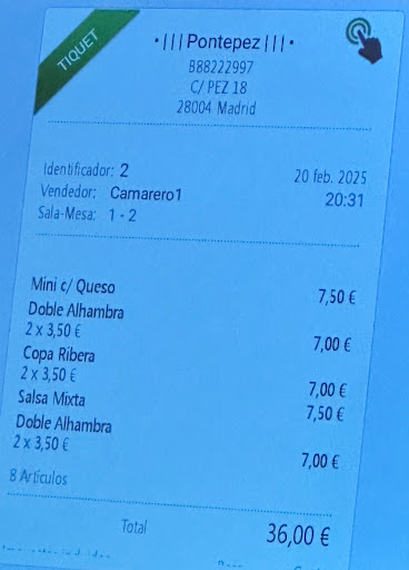In the evening, many of the tapas we wanted were unavailable, so the options were quite limited. Despite that, we had a good experience because the portions were generous, and the atmosphere was warm and had a nice energy. The drinks were also good.