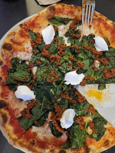 Read moreWe dined here on a Sunday afternoon and enjoyed a wonderful meal while our daughter played in the square. We first sampled the Mallorquina with mozzarella, sobrasada, goat cheese, lamb's lettuce, and honey. The crust was delightfully crisp, and the combination of flavors, particularly the boldness of the goat cheese, was fantastic. The second pizza was a daily special featuring pepperoni, mozzarella, and blue cheese. It was just as good, with the small amount of blue cheese adding a nice touch without being overpowering. Lastly, they offer a great selection of beers, and all the waitstaff we interacted with spoke English.