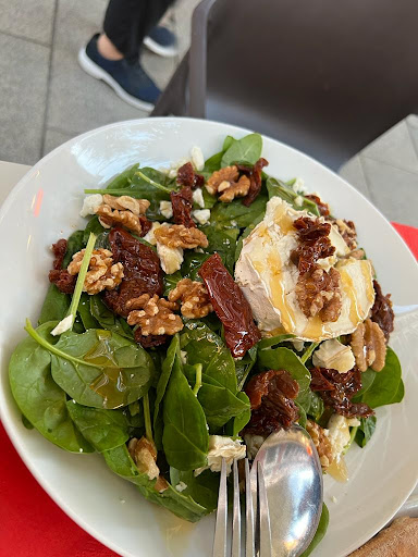 Salad: walnut, spinach, semi dried tomato, goat cheese drizzled with honey.