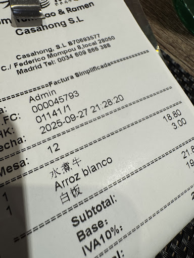Read moreEs un sitio donde comen chinos, con eso ya dice bastante y la carta está basada más en la comida china de ramen y platos auténticos que en lo que hemos conocido como chinos con pollo al limón. Todo lo que he comido estaba delicioso, desde la berenjena sechuan como unos tallarines con ternera que aunque no picaban que eso aporta sabor ya de por si tenían mucho sabor. Lo que me ha gustado mucho es que se nota producto de calidad a muy buen precio. Para la gente que le da miedo ir con niños a estos sitios, tienen platos que combinan un "huevo" que para ellos es Gaitán, con por ejemplo lomo de cerdo frito y arroz blanco, así que los niños lo comen encantados. Sin duda volvere a probar más platos porque estaba todo muy rico con calidad...