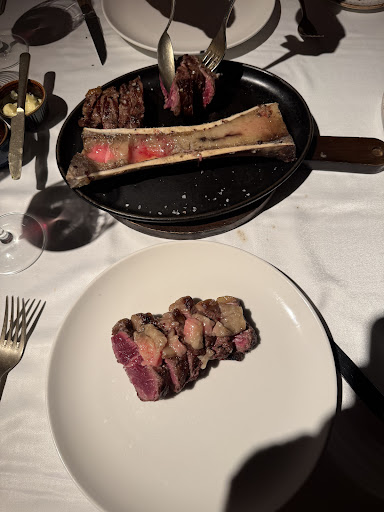 The meal was a true journey of flavors. We began with the Pan y Aperitivo and the Japanese Eggplant, both beautifully prepared and full of character. The Grilled Octopus (Pulpo a las Brasas) was a highlight—perfectly tender with a smoky finish that showed true mastery in execution. The Lomo Alto Ayrshire steak was outstanding, rich and flavorful, cooked with precision and showcasing the quality of the ingredients. The Warm Salad added a fresh and balanced note to the experience.