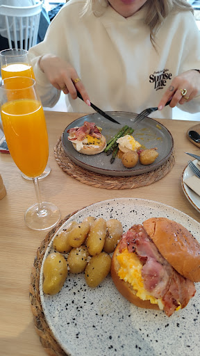 Firstly, my biggest complaint is the really elevated prices of otherwise pretty regular food. We both got orange juices for a whopping 4€ each and they got served in a champagne flute, meaning we hardly got 4€ worth of orange juice. As for food, my friend got the eggs Benedict meanwhile I got the breakfast burger and while it was pretty good, it's absolutely not worth the 16€ I paid for it! It's literally just a brioche bun with eggs, a slice of cheese, bacon and caramelized onions so I don't see the justification for the price.