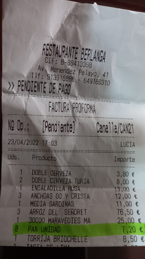 Estuvimos el domingo comiendo a las 13:30 con mi familia. Mi primo, su esposa e hija recién nacida, mi madre, mi novia y yo. La cuenta fue de 210 euros sin vino.