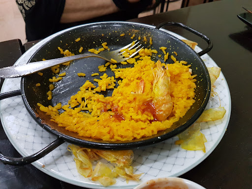 The place was a bit empty on a Sunday afternoon. We stopped here after done waiting for Mu and Takkos. Just like every restaurant in Madrid, the service was quick and to the point. We ordered the special from the menu: Pincho mixto and Grilled chicken. The pincho mixto came with three meats (kebab) style; lamb, minced meat and chicken with yellow (biryani) rice and a small portion of salad with chips(French fries). My wife ordered the grilled chicken and instead of the chips and salad she just wanted the rice. It’s a bit confusing when you request substitutions in restaurants throughout Madrid but somehow we succeeded on this one. Anyway, the chicken was very cooked, and I say very cooked I mean it was very dried and burnt on the outside. We also had the cheese sambusa, although they were good, the price for 4 bite size sambusa was at €6.50, very pricy. Overall the kebabs were very good along with the rice but the grilled chicken needs more...