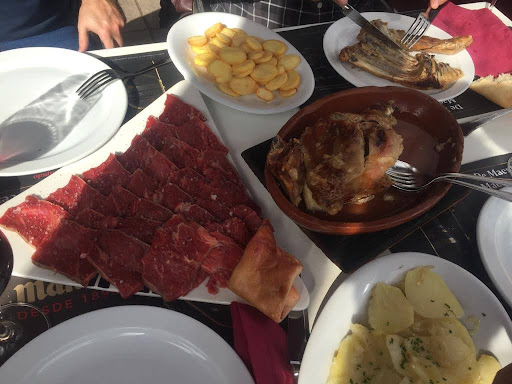 Read moreFuimos 12 a comer el domingo pasado, 16 de febrero. El servicio atento pero algo despistados. Tres horas para comer: sacaron todos los segundos a la vez pero el último plato que salió fueron unos huevos fritos. Mejor los entrantes que los primeros: torreznos, cazón y calamares óptimos. Croquetas de rabo de toro al borde de la devolución. Judiones de la granja mediocres, entrecot (los he probado mejores), solomillo bien, rodaballo al horno flotaba en su salsa, cordero bien. En definitiva: carta escasa y carta de vinos nula: sólo nos ofrecieron un único vino: Cillar de Silos 2020 a 25 euros (precio algo elevado para mi gusto...) Otra sorpresa fue que a la mesa de al lado le dieron carne a la piedra y ración de gambas, platos ambos que no aparecían en la carta. Conocidos del gerente, tal vez... Climatización del local errática: tan pronto la temperatura bajaba a los 15 grados y al rato...