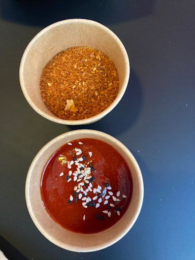 We ordered two starters (the cauliflower & the fried eggplant (the purple dragon - loved the name of this dish)), a main dish (fried chicken with a spicy sauce) together with some cucumber pickles and rice which was just the right amount for two medium hungry people beside being very tasty. Personally fed up by restaurants with menus like novels (meaning endless choices) it was refreshing to see a place which focuses on smaller amount of dishes to bring them to excellence!