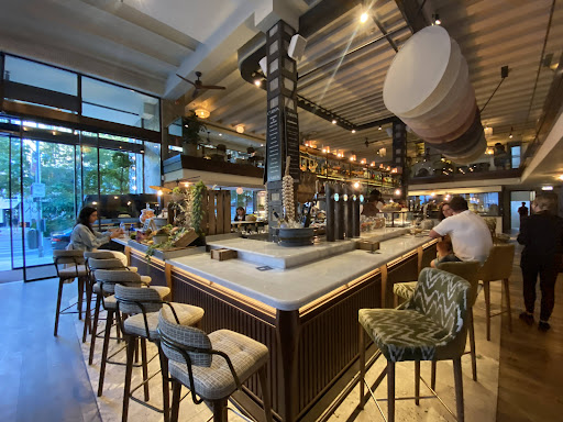 The ambiance strikes a perfect balance between modern elegance and rustic charm, with a soft, intimate lighting that complements the restaurant’s focus on refined, wood-fired cuisine.