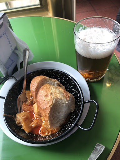Read moreEstábamos en el tanatorio de San Isidro, y por no comer allí y dar una vuelta nos aventuramos en salir al barrio a buscar cualquier sitio en el que comer algo. Nos topamos con este restaurante y nos frotamos los ojos al ver el cartel del menú del día, en sábado y que encima es festivo. 10€. Pensamos que bueno, por probar tampoco perdemos nada. De primero pedimos callos con garbanzos....buenísimos y contundentes. De segundo yo bonito con tomate y mi pareja pollo en salsa, ambos bien acompañados de patatas fritas caseras. También excelentes ambos platos. Y para rematar un puding casero también muy rico. Hacia tiempo que no veía un menú del día por ese precio y que estuviera tan bueno y saliera...