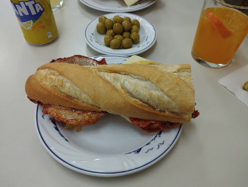 Read more(Bar section) My buddy and I stopped in for a drink and then we decided we were hungry too. The kitchen was closed for the post lunch rest (very normal in Spain). We asked for some bocadillos de lomo without much expectation. They were delicious! The pork loin was juicy and cooked just right. There seemed to be some cheddar cheese spread on there that I did not think existed in Spain and there was a simple but tasty sliced cheese...