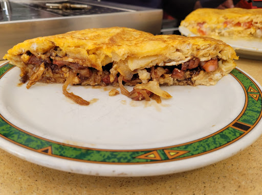 Read moreEstuve para desayunar, probé la tortilla de carbonara que me recomendo uno de los camareros, no me gustó su recomendación le pregunté si era la tortilla que más salía y la que más gustaba pero estaba entera y nose si me la recomendó por sus gustos. La tortilla de carbonara me pareció muy sin más, no tenía un sabor super diferente ni que destacará aunq la tortilla en si estaba buena. Ya que vi que no parecía buena recomendación, pedí una tortilla de estrella Michelin para llevar, la que me parecía que era la estrella de la casa. Esa si me pareció una buena tortilla, por lo menos se diferenciaba de una tortilla normal con los ingredientes que llevaba rellenos me pareció bastante buena y que volvería a probar. El servicio fue muy bueno, los camareros parecen serios de primeras pero luego me parecieron majos y muy educados. El ambiente es de un bar normal, no tiene mucha decoración. Volvería simplemente por probar otro tipo de tortillas que me llamaron...