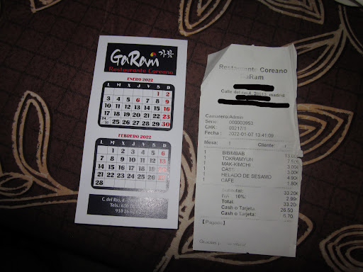 Y una cosa que me pareció buena es que, si bien no había mucha gente aquel día (al menos a la hora que estuve yo), al menos la mitad de la clientela eran personas coreanas (recuerdo además a una mujer coreana bastante simpática que entró aquel día), y supongo que si van, es porque la comida es coreana de verdad. De todas maneras, no tengo con qué comparar, ya que es el único restaurante coreano al que he ido.
