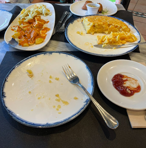 Read moreVery accommodating as we had a baby and pram. Comfortable to eat lunch and feed your baby. They served the food quite quickly and gave an english menu when asking. Ordered potatoes - wish the sauce was on the side but instead it was drizzled all over the top. Ordered cod fritters which was nice with the sauce it came with. Ordered the potato onion omelette, which was very nice. Overall the food was average, nothing amazing and special but enough to keep you going for lunch. However it was quite pricey, not so much value for money, 34.50 euros and we order full plate potatoes, half potato omelette and half cod fritters with 1 soft drink. Service was good cannot fault it. 2.5...