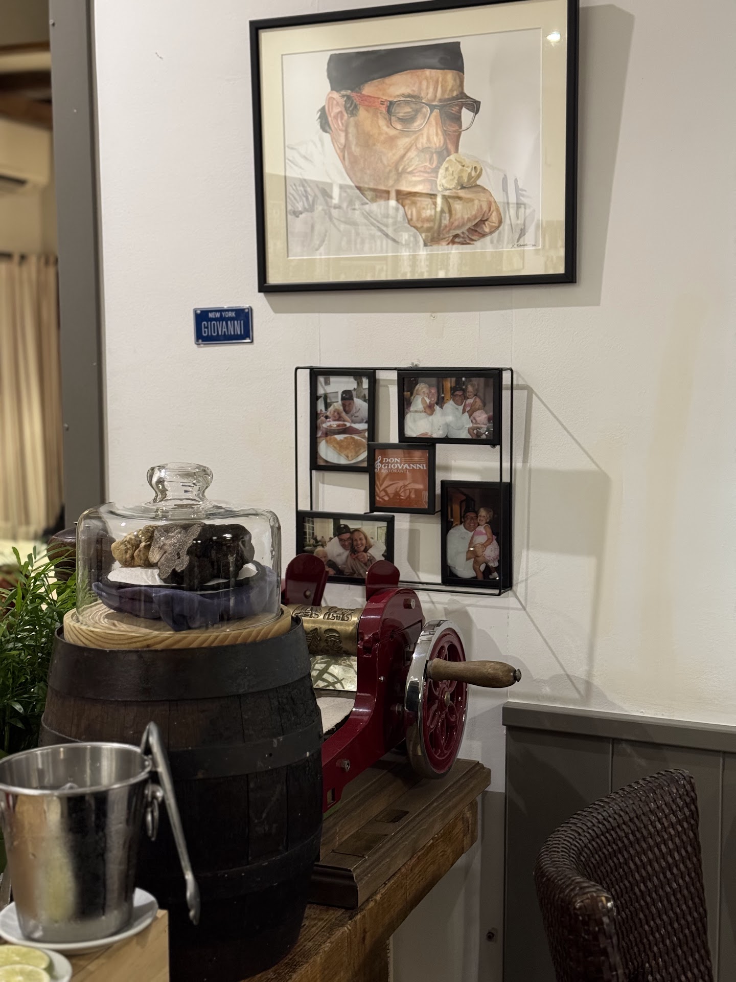 The first noticeable thing is how everything in the restaurant has the face of the chef. And I get it, it's also a TV personality, but seeing him in every wall, being a picture or a drawing, in the plates, in the service's clothing, and even in the small sweets envelope ends up being, at least, odd. Now to the food, provolone cheese entrance was very tasty, just plain grilled cheese with some season, on spot. I ordered the ravioli filled with bufala mozzarella and spinach with a white sauce and a sweet component to it with raisins and an Italian type of cookie. It was interesting, I knew I was in for something not traditional and that's what I got. My partner went the opposite direction, plain and straight forward cacio e pepe spaghetti, probably one of the simplest and most accurate way of testing an Italian restaurant. And sadly it was salty to the point of almost uneatable. She ended up asking me for some of the sweet sauce on my plate to try to balance out the saltiness. It's peculiar, since the cacio of the dish usually is all the salt it needs, plus maybe the salt in the boiling water. Don Giovanni it's not amazingly expensive, but for 20 euros dishes it's lacking simple details, such as trying the seasoning before sending to the table. The place was fully crowded, that's why even with service trying to be nice and quick, we waited 20 minutes for a check I had to request 3 times. I'm pretty sure on a quieter day things might be different and better. Well, all except the amount of pictures of the chef...