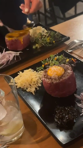 We ordered the steak tartare, which was hands-down one of the best I’ve ever had — fresh, perfectly seasoned, and topped with a silky egg yolk that elevated every bite. The selection of dishes we shared, including jamón ibérico, tomato salad, and toasted bread topped with savory clams and rich ham, was absolutely delicious. Each dish highlighted the quality of ingredients and the care put into preparation.