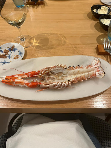 Cigalas a la brasa. Muy buenas de sabor y el producto de primera. Pero claro a 59€ cada cigala no volvería en mi vida a pedirlas porque no lo valen, es un despropósito.