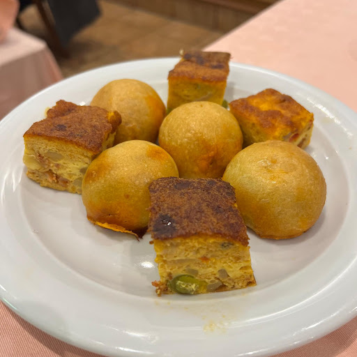 Read moreFuimos a cenar a la parte del restaurante. El salón mantiene una estética antigua, con mesas amplias. Teníamos idea de comer un cachopo, así que preguntamos por el tamaño de las raciones. Nos aconsejaron, pero al final de la comida pensamos que pedimos de más. Probamos: -Lomo de sardina ahumada sobre pan tumaca y pimiento asado. Viene cada unidad en un plato acompañado de ensalada. Realmente pensábamos que sería una tostada fina de pan pero la ración es generosa para compartir. -Habitas salteadas con chipirones y pimientos del piquillo. Nos costó encontrar los restos de chipirones. De nuevo la ración de habitas (que no de chipirón) muy abundante. -Buñuelos de bacalao. La ración trae 10 unidades. Con este nombre pensaba que serían buñuelos con masa de bacalao dentro. Realmente son soldaditos de pavía con forma redonda. Ricos de sabor, aunque vinieron algunos trozos con espinas. -Cachopo. Vino seccionado en 4 trozos y servido con patatas fritas y pimientos del padrón. Estaba bien hecho, pero eché en falta más sabor del queso y que viniera algo más caliente. Pedimos un café solo y nos trajeron como detalle unas bolitas de coco. Un problema que tuvimos a lo largo de la comida, creo que por ir demasiado pronto, es que los camareros estaban muy encima y fue incómodo. A cada plato que estábamos terminando venían a recogerlo, sin dejarnos acabarlo tranquilamente. Lo bueno es que cuando el restaurante se empezó a llenar ya no estaban tan encima, pero nos agobió bastante. En cuanto al precio, es verdad que las raciones son grandes, pero nos resultó muy caro. Preferiría que fueran más pequeñas y...